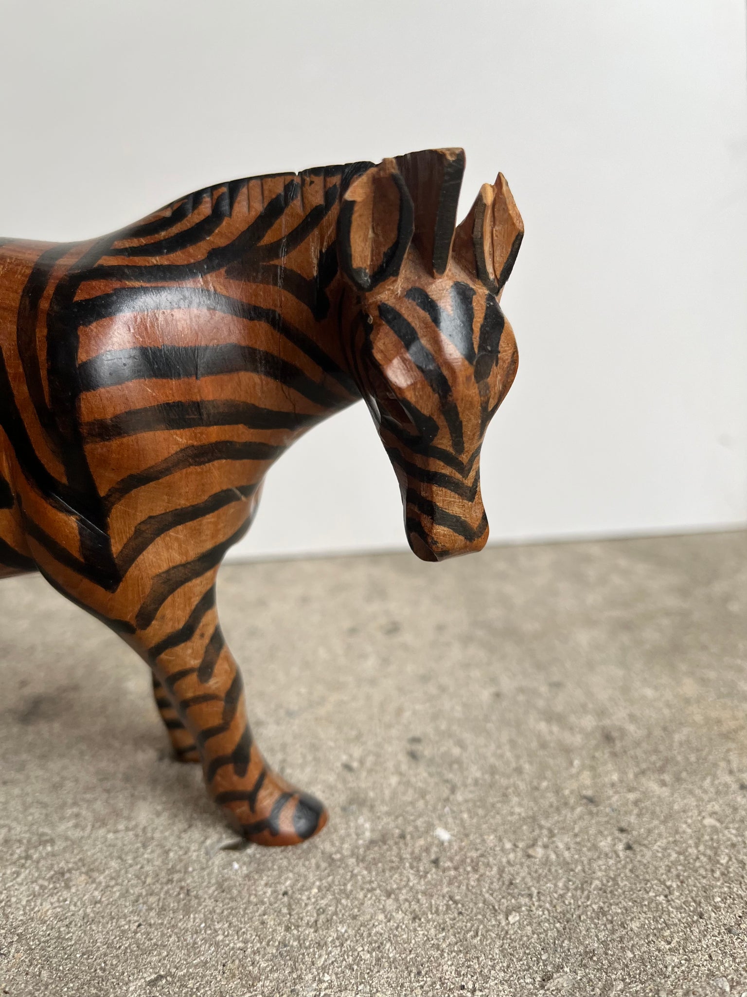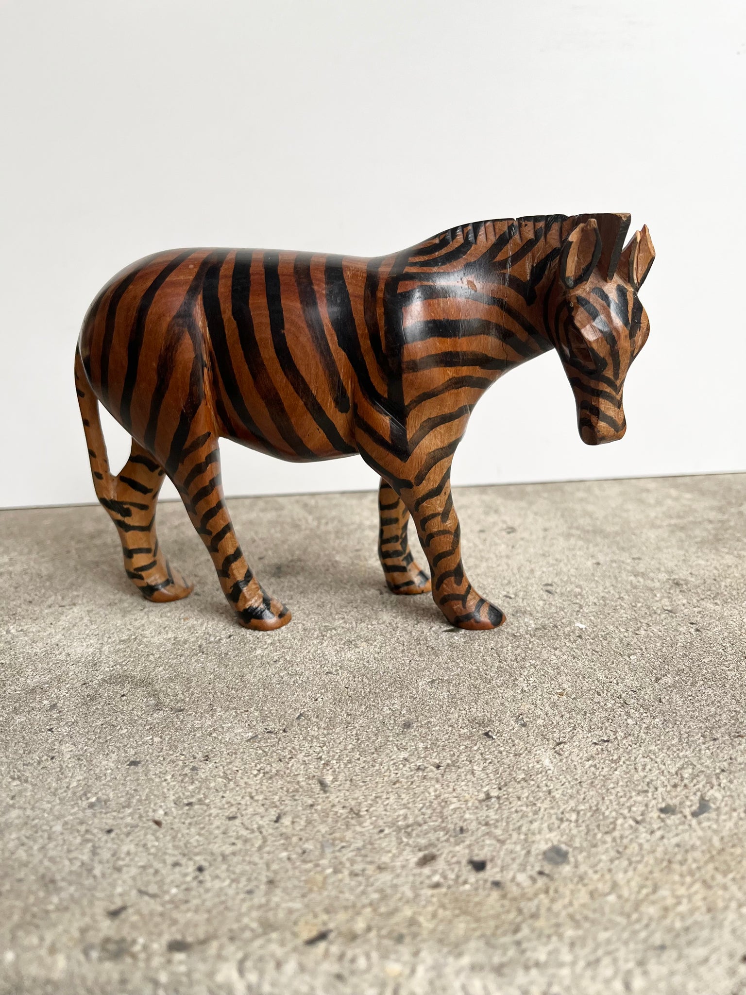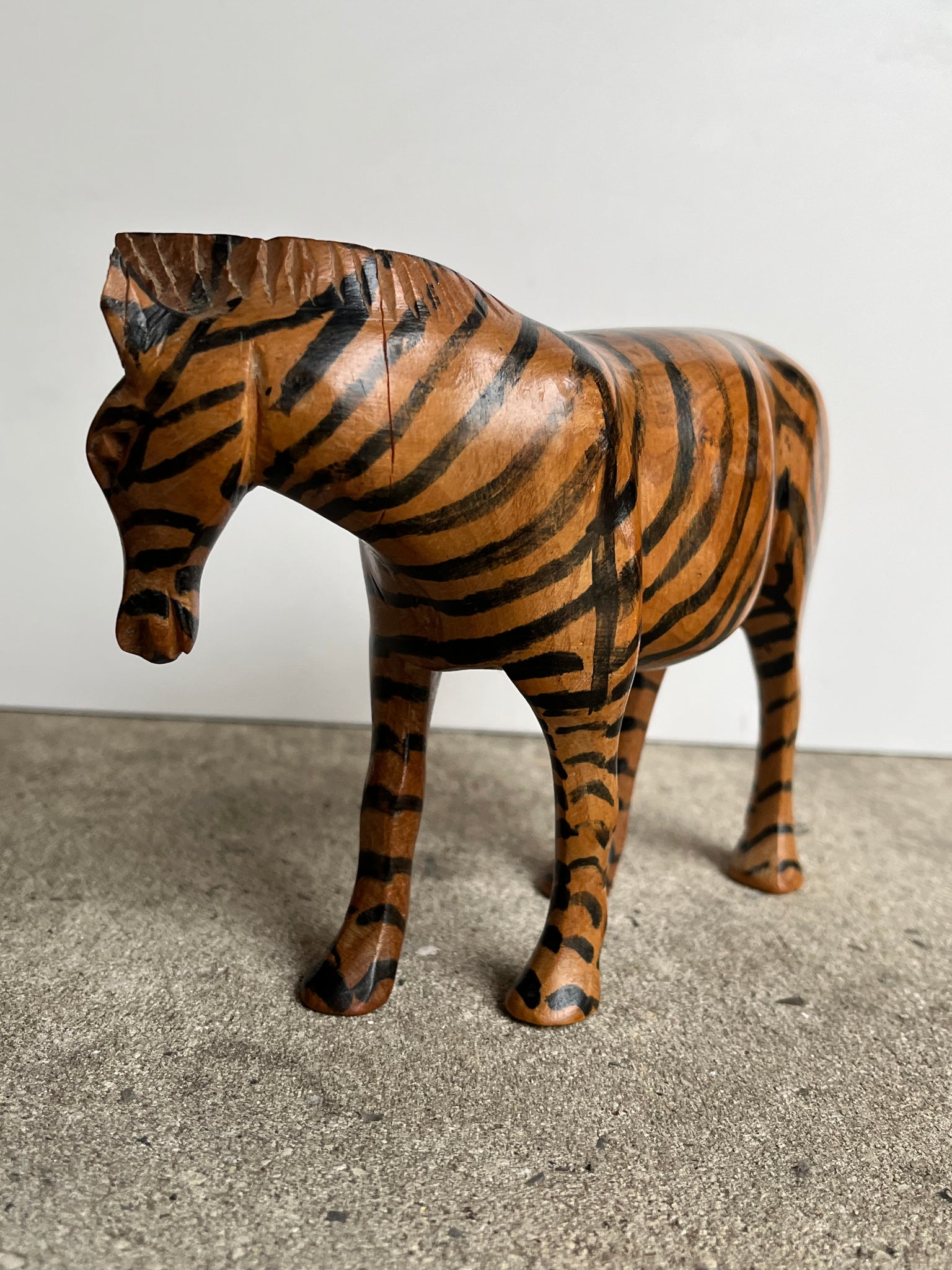 Attractive vintage hand-carved wooden striped zebra.
